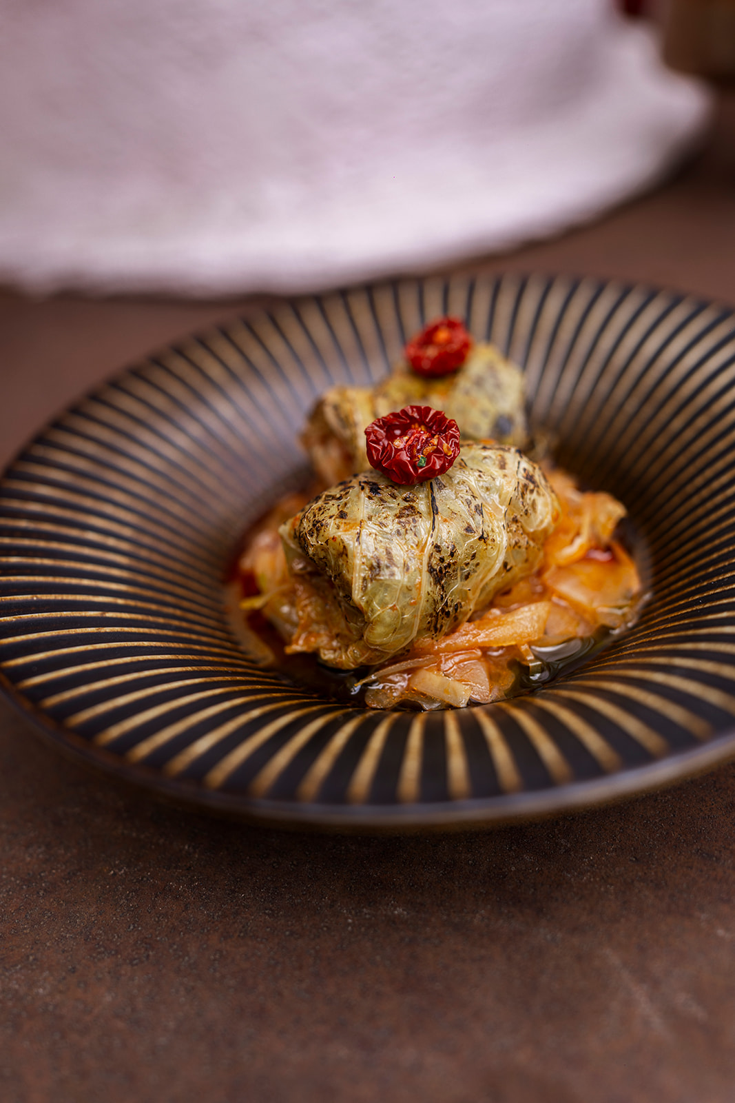 - mangalica, feketebors majonéz, káposzta, gouda sajt